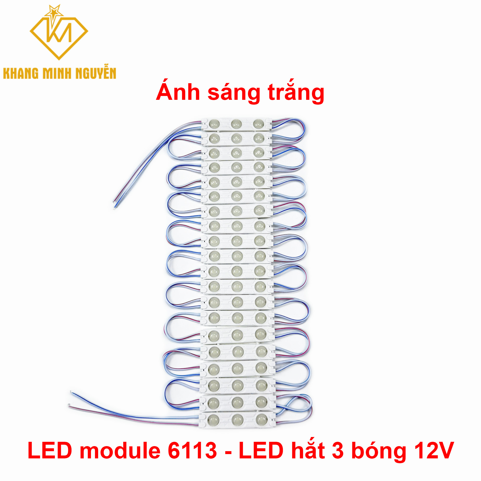 - Gồm 3 chip LED (thường là loại SMD 5050, SMD 2835 hoặc SMD 5730), đảm bảo ánh sáng mạnh, ổn định và đồng đều.