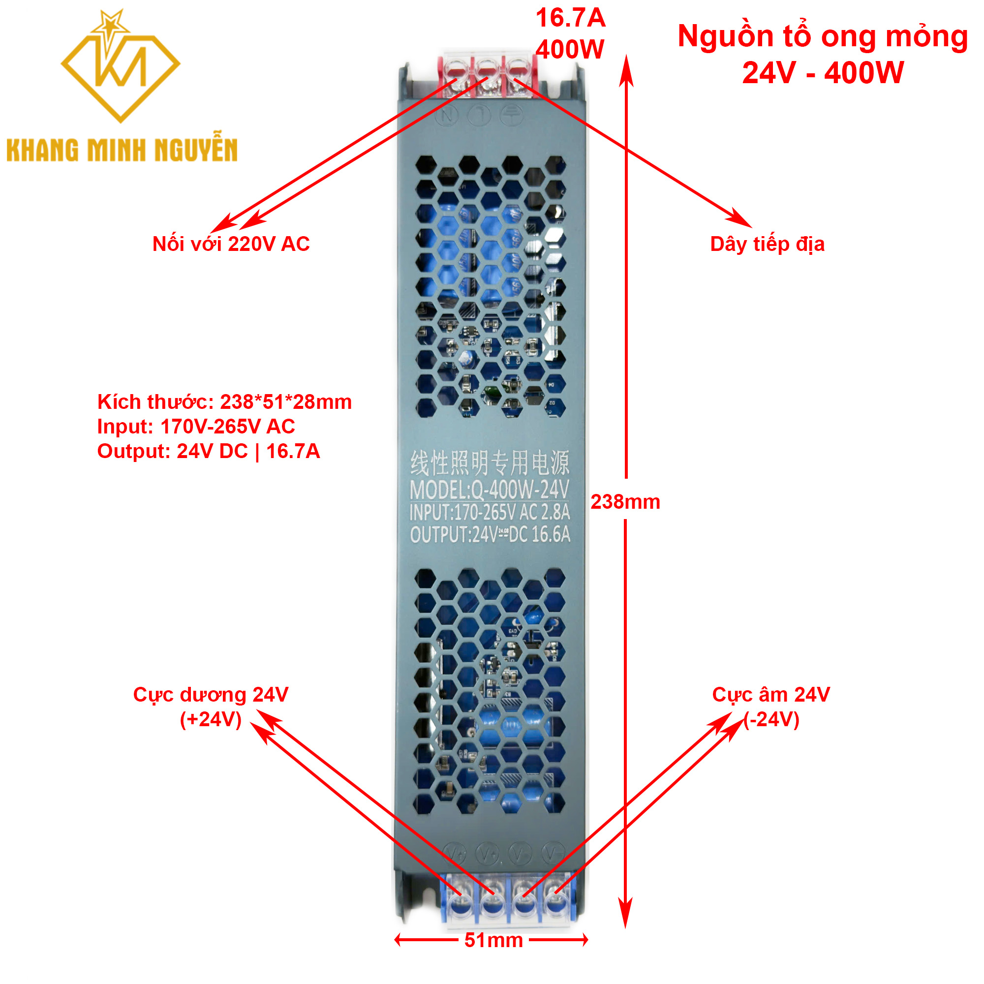 Thông số kỹ thuật nguồn led 24V: